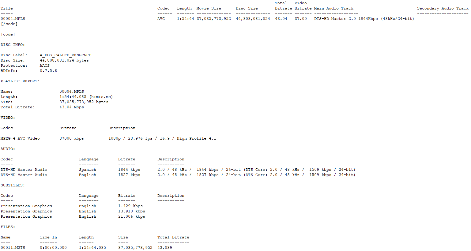 A Dog Called… Vengeance Blu-ray Bitrate Info