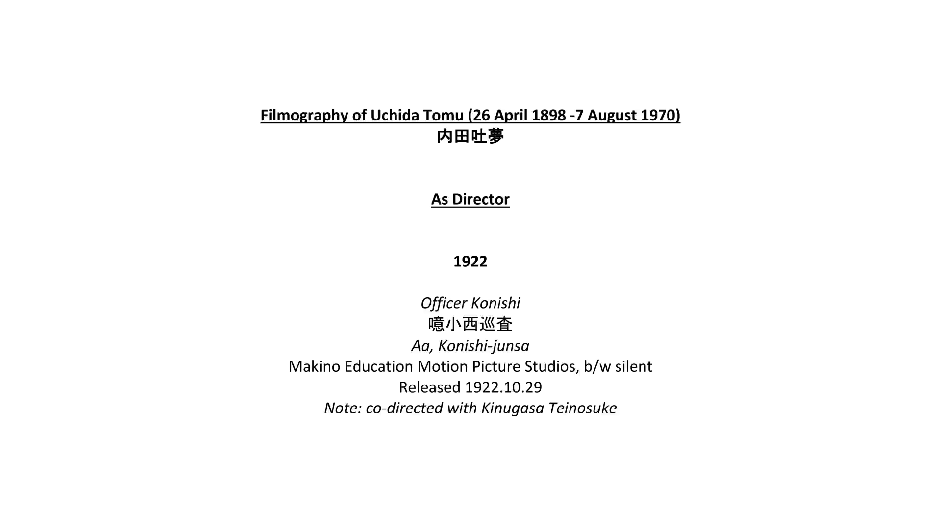 - Tomu Uchida filmography (chapter breaks)