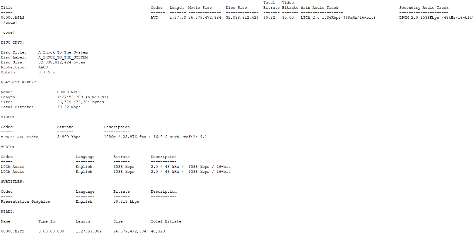 BD Info (what’s this? )