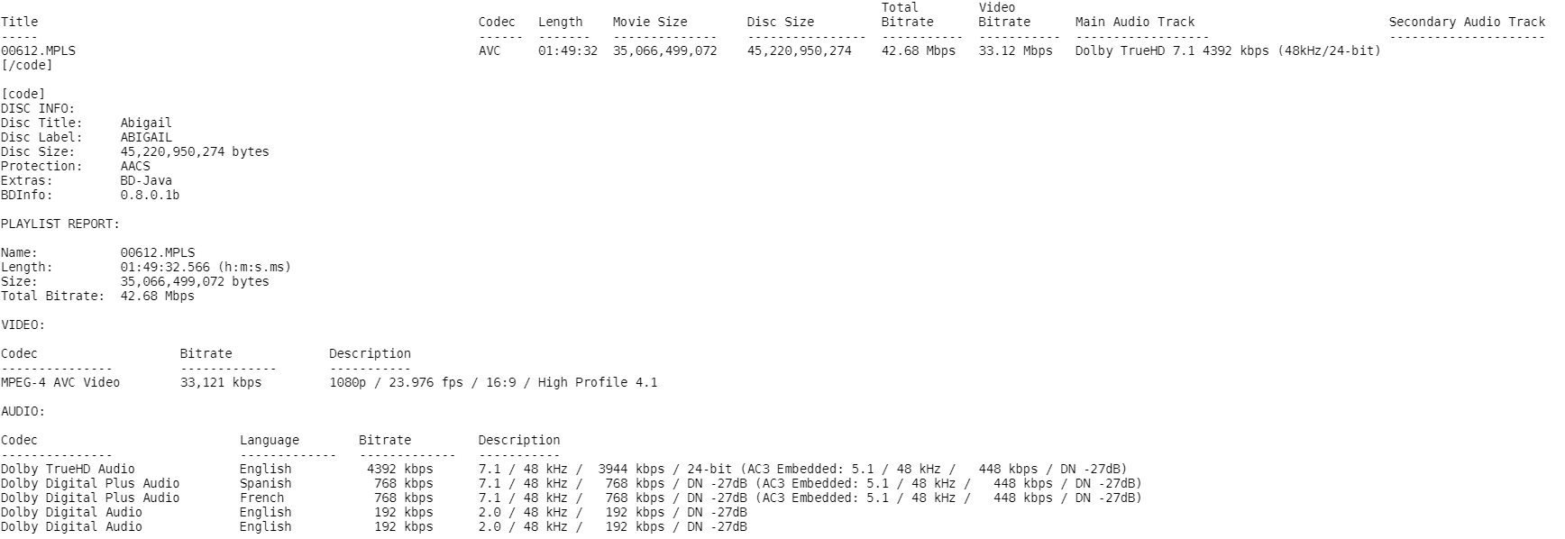 BD Info (what’s this?)
