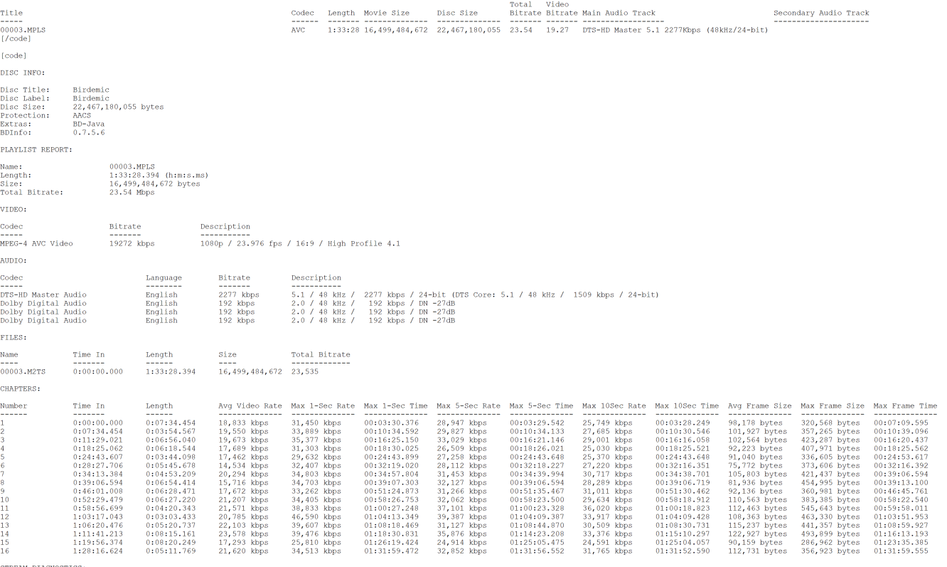 Birdemic: Shock and Terror Blu-ray Bitrate Info