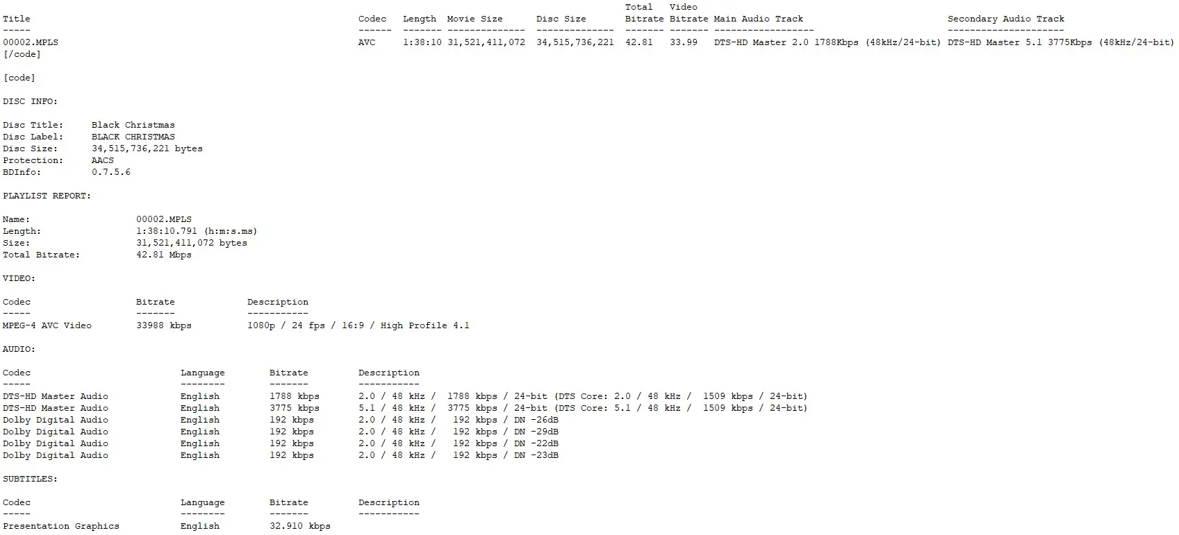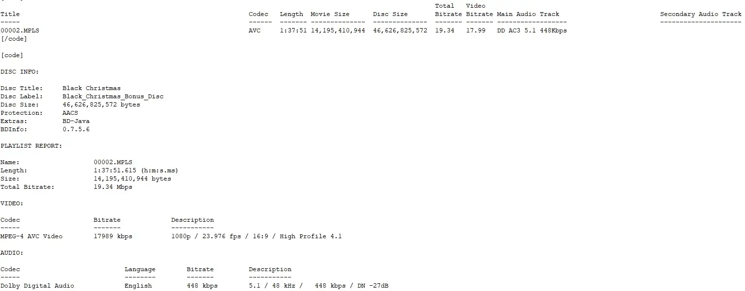 BD Info (what’s this?)