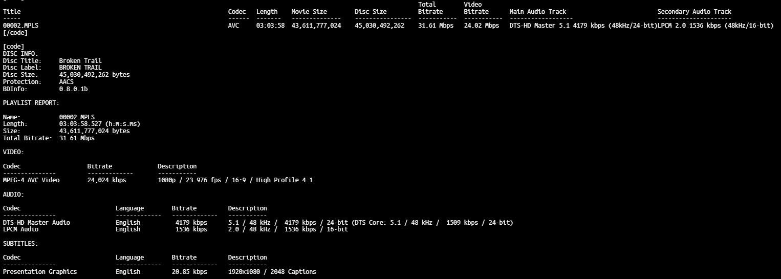 BD Info (what’s this?)