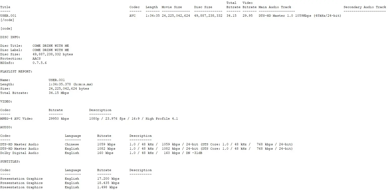 Uncompressed Mandarin and English original mono audio