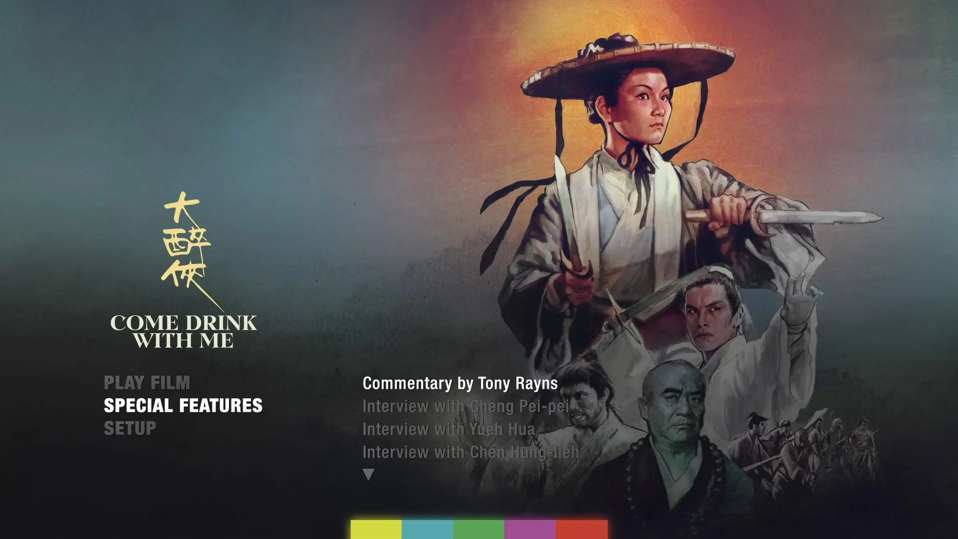 Cinema Hong Kong: Swordfighting, a documentary on the history of the wuxia genre and Shaw Brothers’ contributions to it, produced by Celestial Pictures in 2003 and featuring interviews with Cheng Pei-pei, Gordon Liu, Lau Kar-leung, John Woo, Sammo Hung, Kara Hui, David Chiang and others (1080p; 50:21)