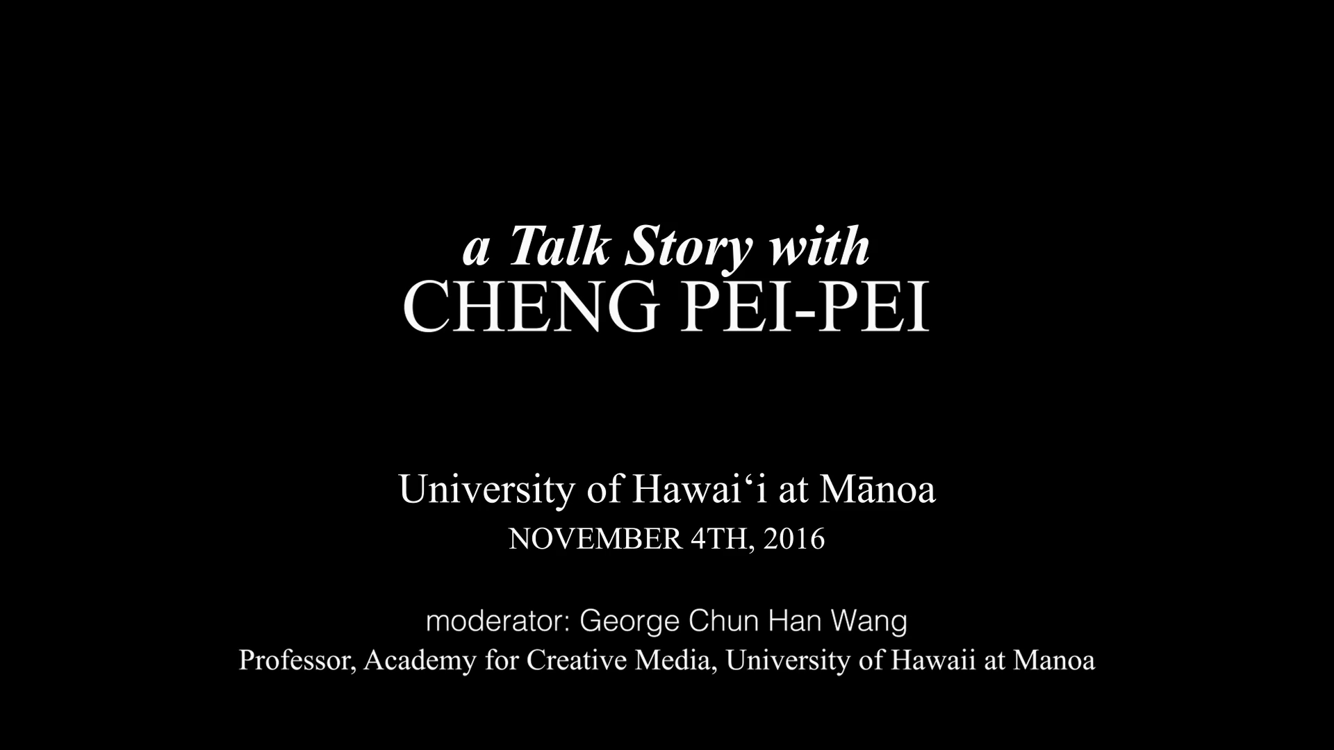 Talk Story with Cheng Pei-pei, a 2016 Q&A at the University of Hawaii moderated by George Chun Han Wang (1080p; 10:47)