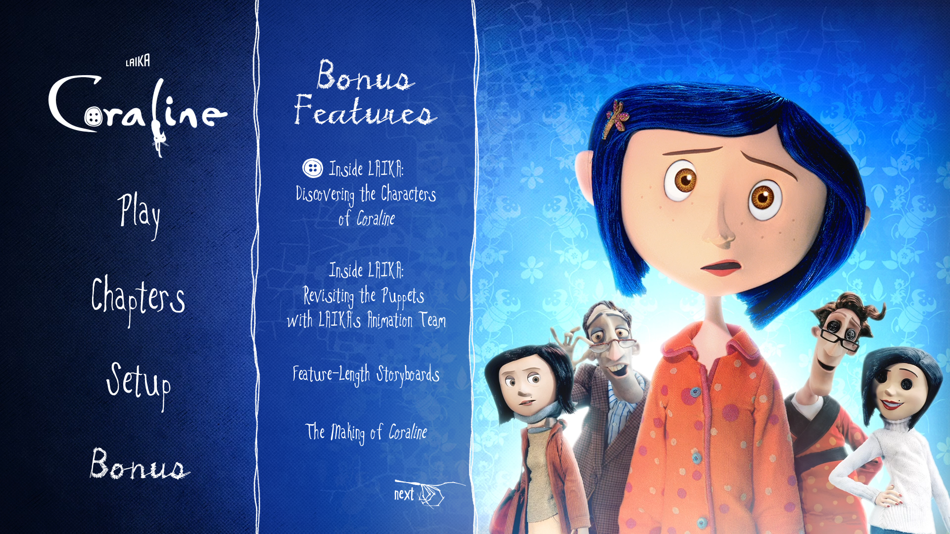 - “Inside LAIKA” – Discovering The Characters Of Coraline Featuring Never-Before-Seen Test Footage (1080p; 10:45)