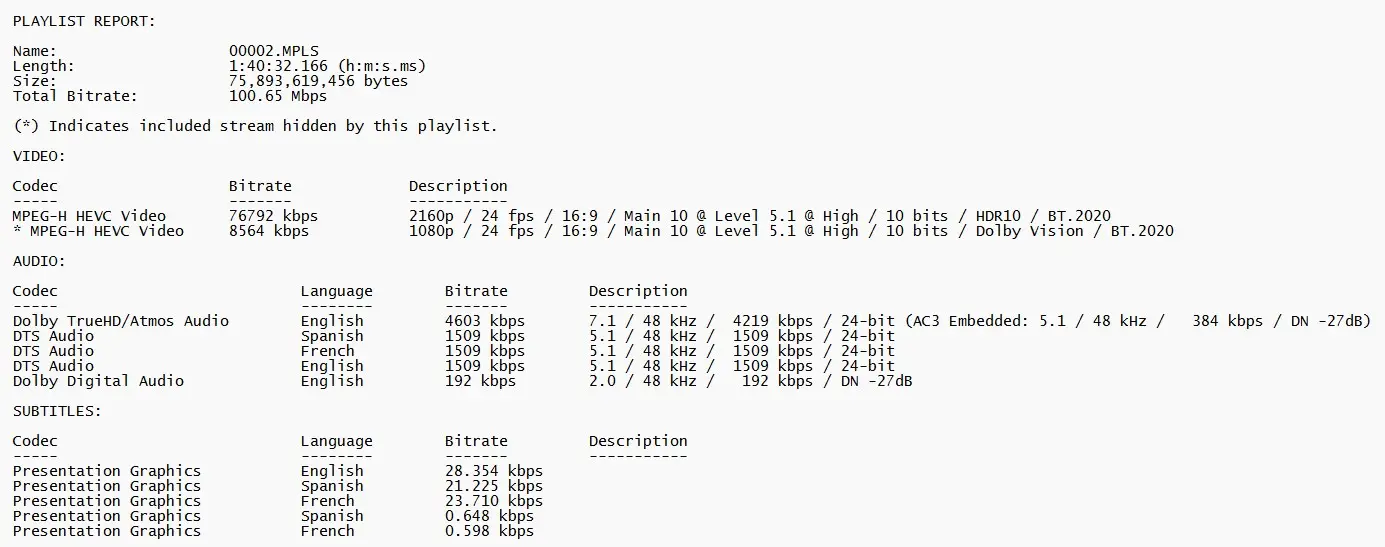 Note: due to a firmware error reading the disc, we were not able to get scans of the UHD audio tracks.