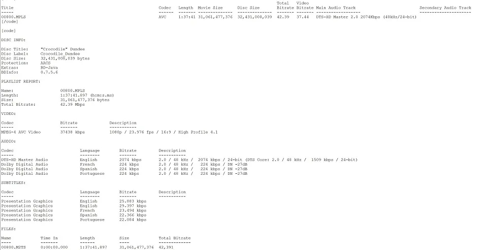 Crocodile Dundee Blu-ray Bitrate Info