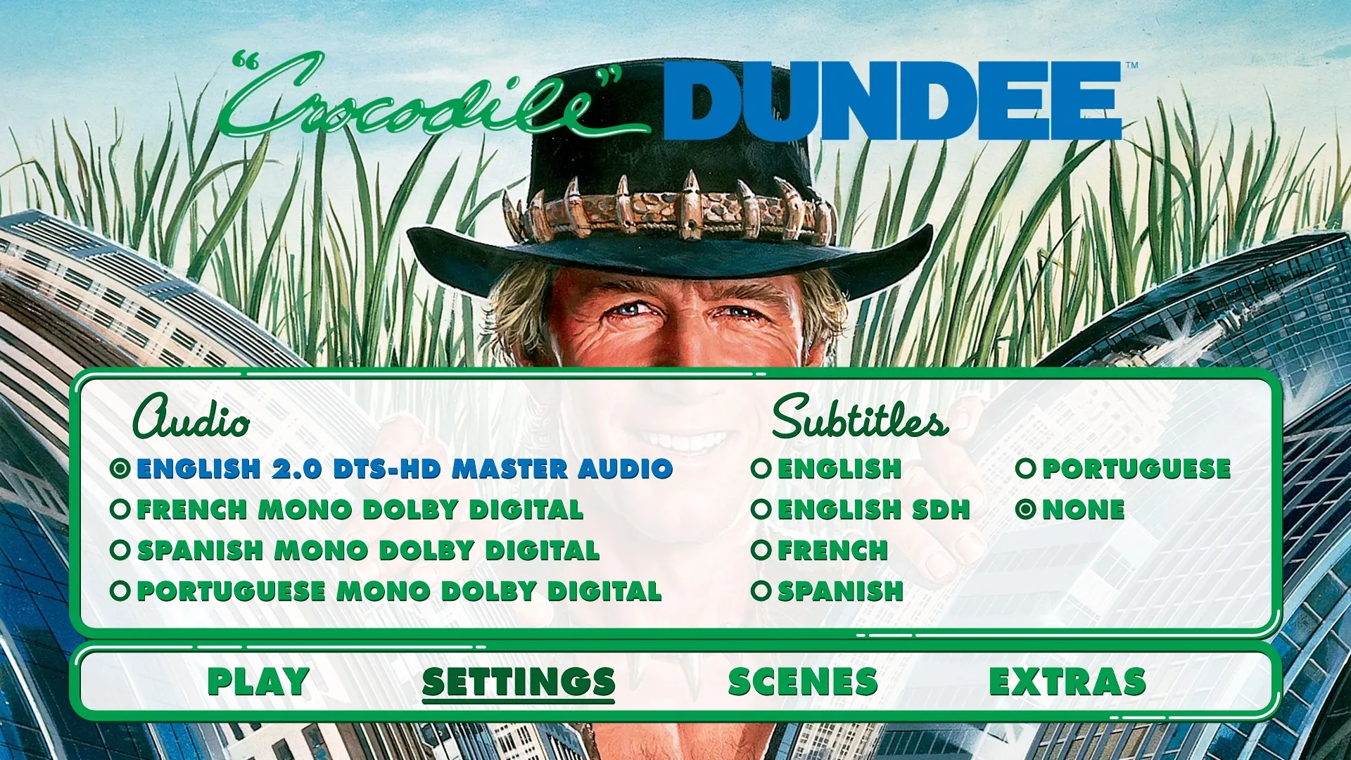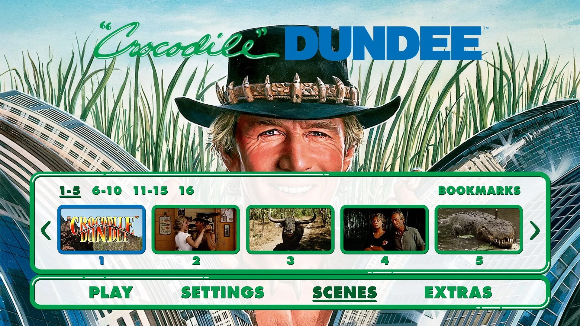 Crocodile Dundee Blu-ray Menu Crocodile Dundee Blu-ray Setup Menu Crocodile Dundee Blu-ray Scenes Menu Crocodile Dundee Blu-ray Extras Menu Features