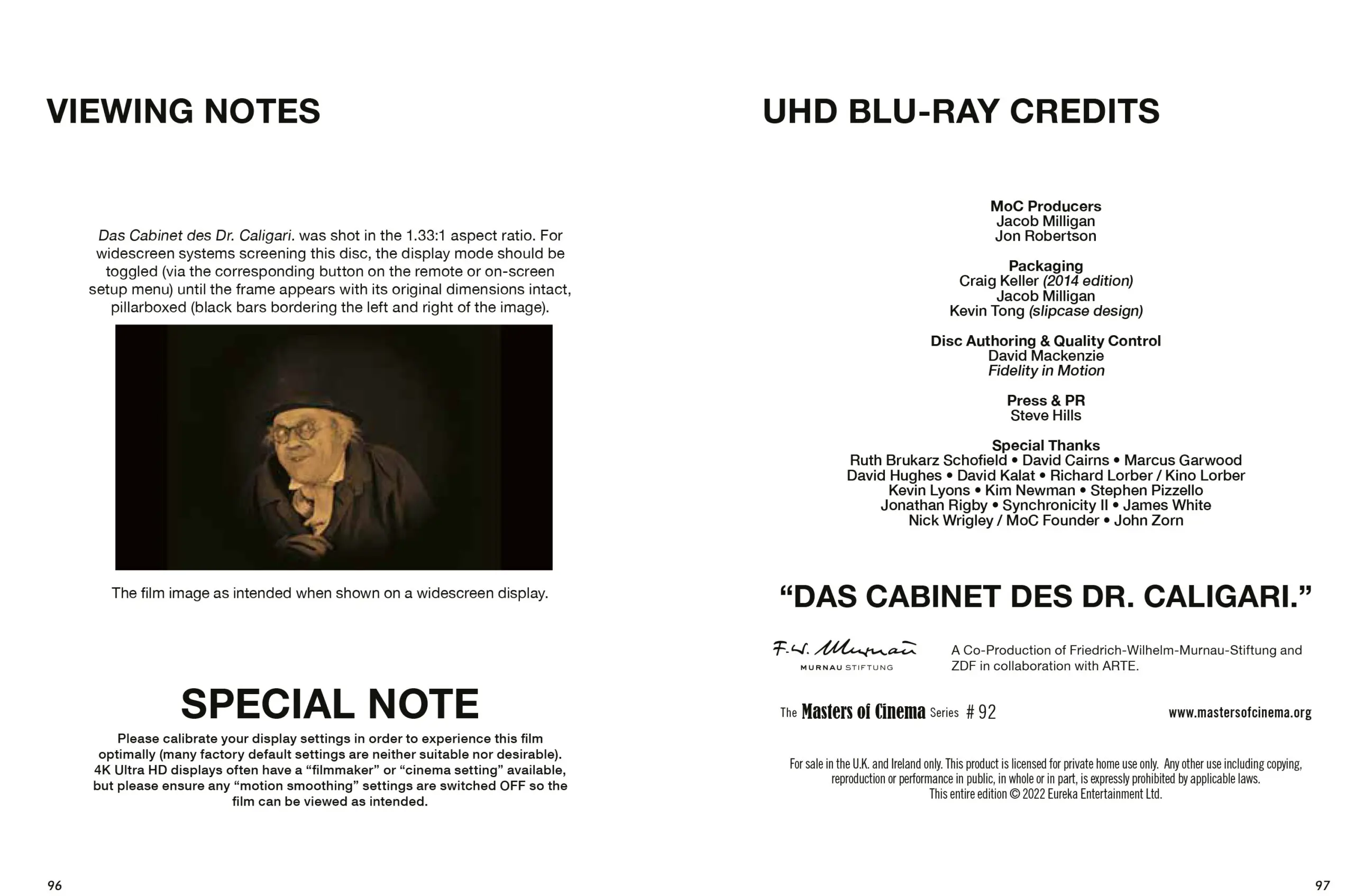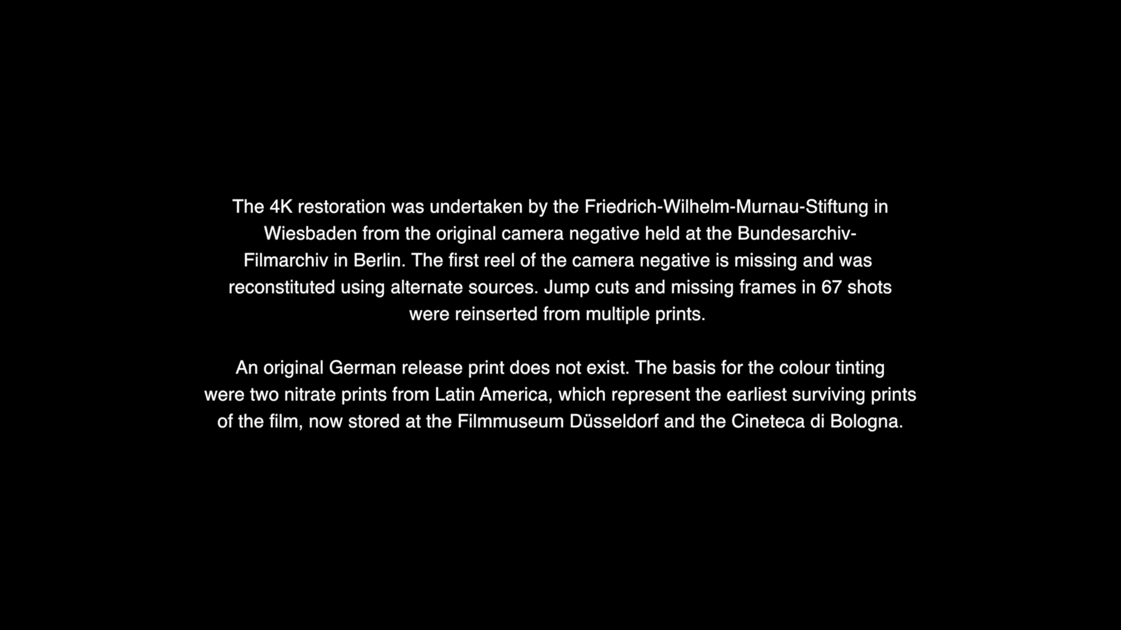 - Original German intertitles with optional English subtitles
