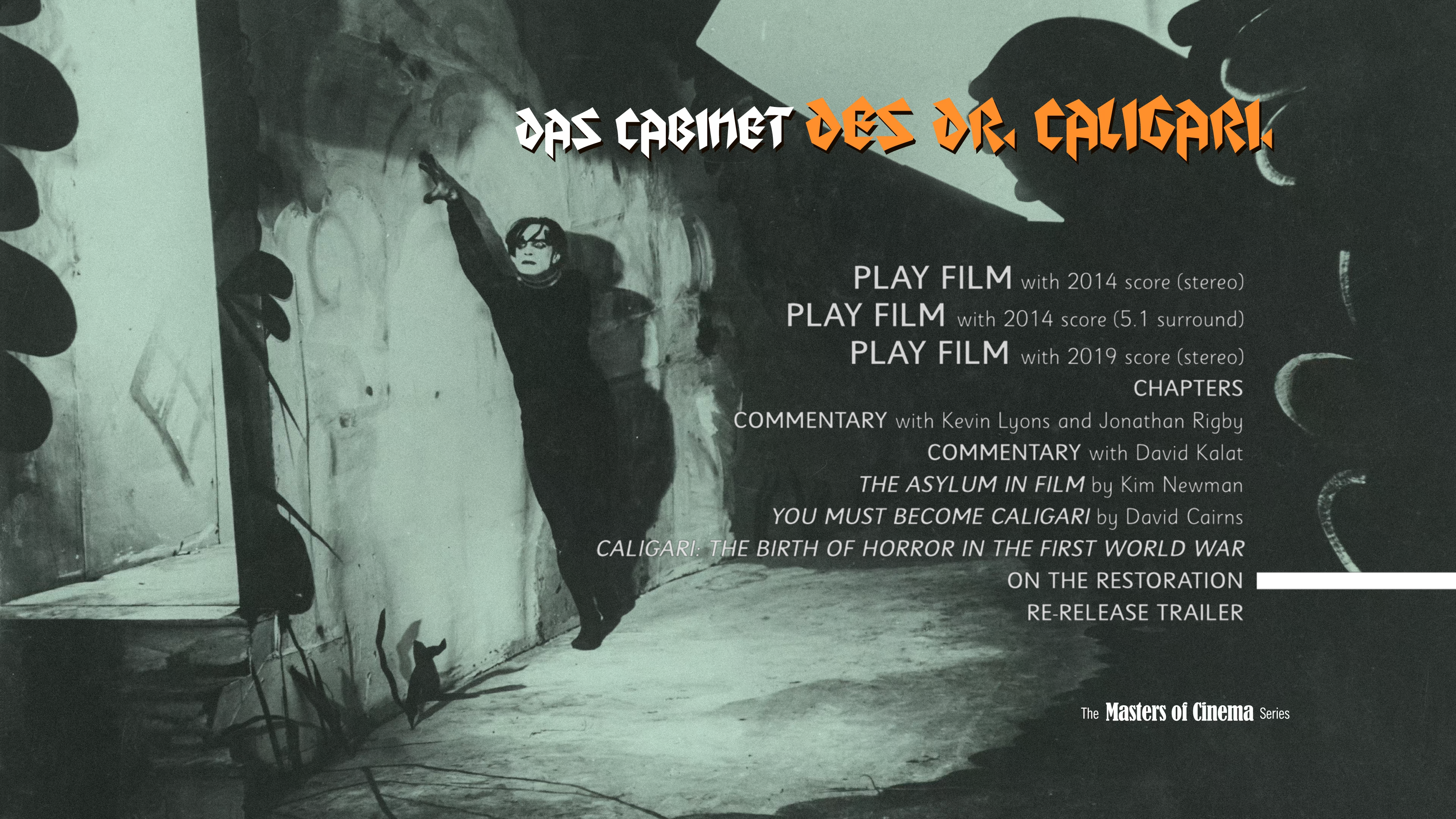 - Caligari: The Birth of Horror in the First World War – 52 minute documentary on the cultural and historical impact of the film (1080p, 52:53)
