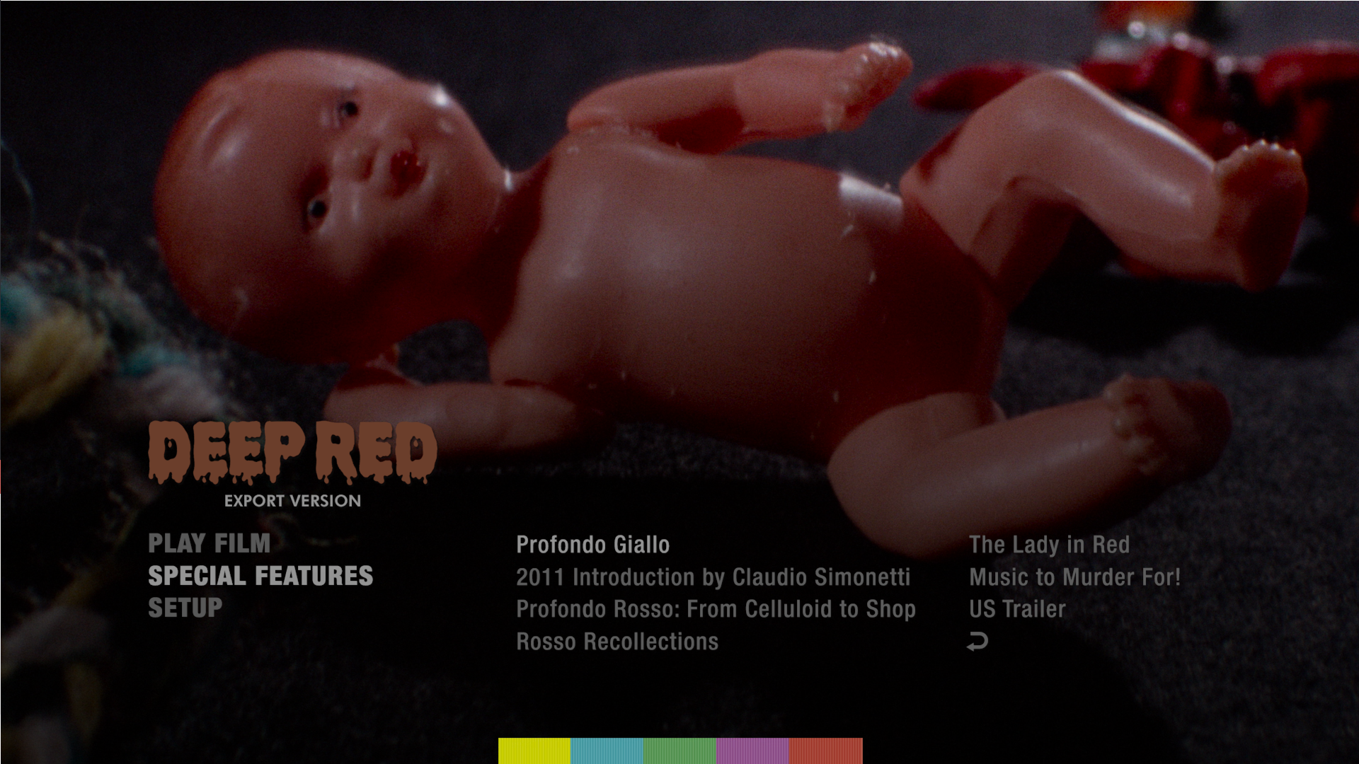 - NEW “Deep Into the Red” – 2018 interview with director Dario Argento, and an archival interview with actress Daria Nicolodi (HD; 57:40)