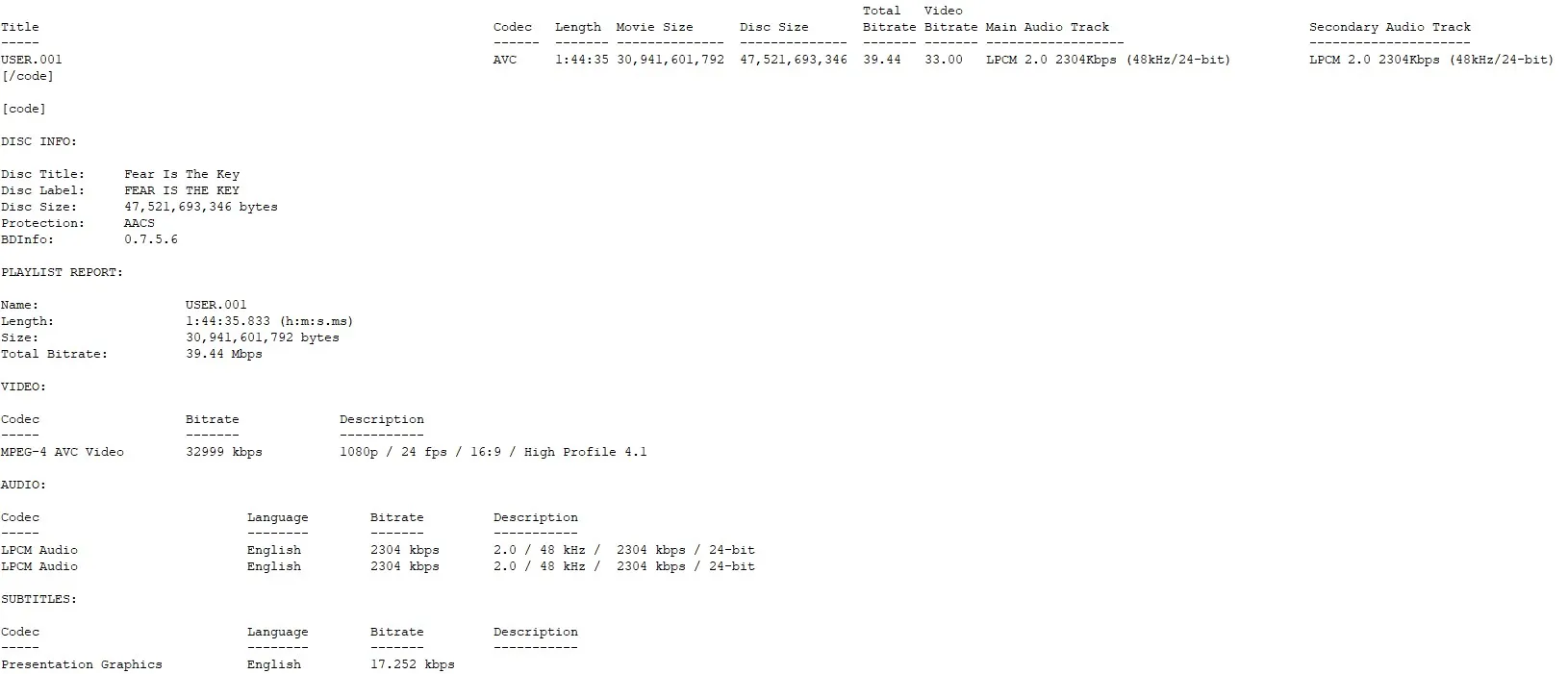 BD Info (what’s this?)