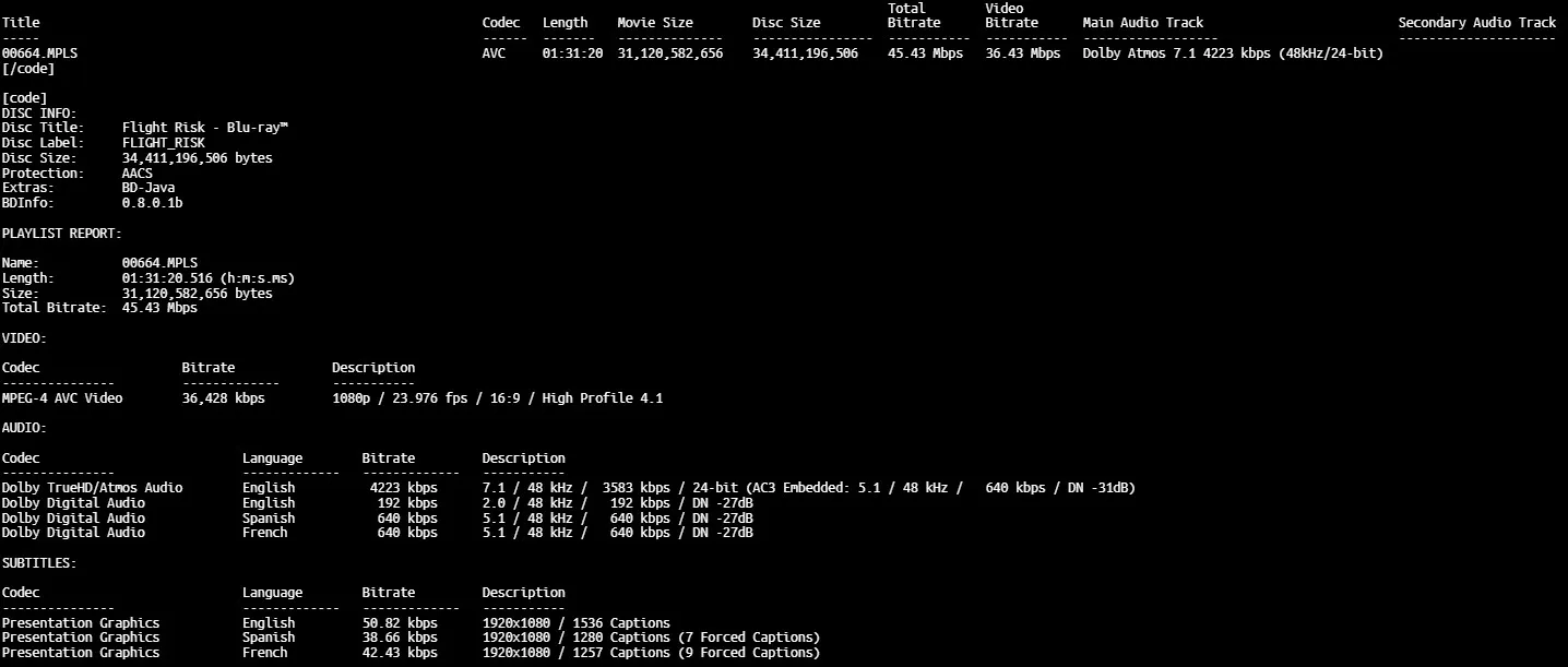 Flight Risk Blu-ray Bitrate Viewer