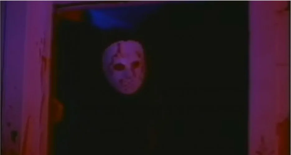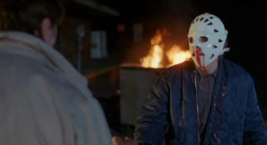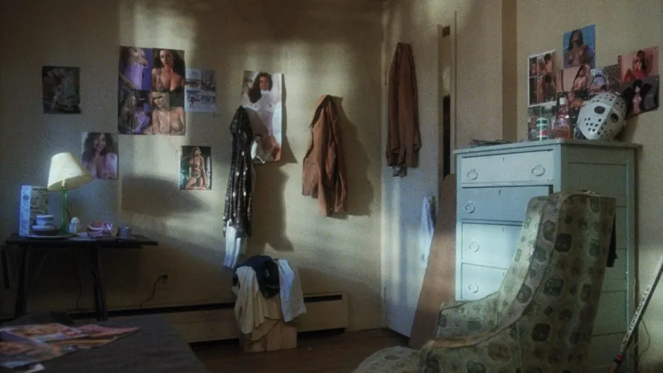 In the rather unknown slasher from 1981, Night School, a familiar-looking mask is seen sitting on a dresser. Just below it is a hockey stick and because this is pre-Jason Mask and no other horror film that we know of had this mask in it at the time, it’s basically a reference to hockey. Also, check out all that nudity on the wall! A serial killer den if there ever was one!