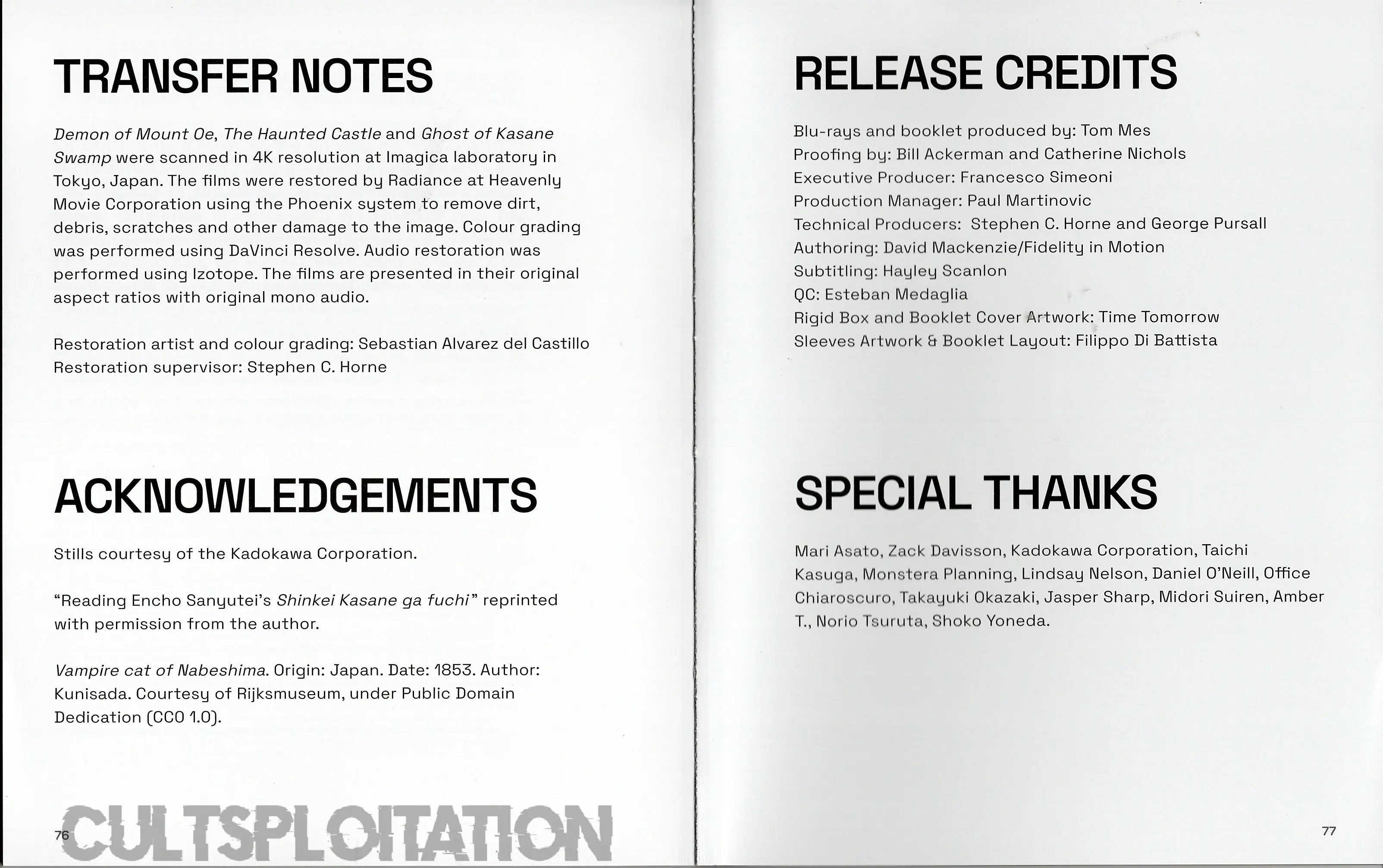 • NEW Limited edition 80-page perfect bound book featuring writing by Amber T, Jasper Sharp, and Tom Mes, plus archival writing by Daniel O’Neill and original ghost stories The Goblin of Oeyama and The Vampire Cat