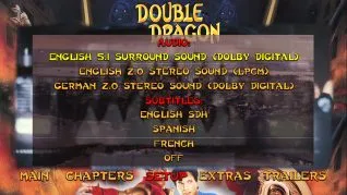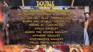 Double Dragon Blu-ray menu Double Dragon audio menu Double Dragon extras menu Double Dragon trailers menu Double Dragon cap 1 Double Dragon cap 2 Double Dragon cap 3 Double Dragon cap 4 Double Dragon cap 5 Double Dragon cap 6 Double Dragon cap 7 Double Dragon cap 8 Double Dragon cap 9 Double Dragon cap 10 Double Dragon cap 11 Double Dragon cap 12 Double Dragon Making of Double Dragon feature 1 Double Dragon Making of Double Dragon feature 2 Double Dragon Making of Double Dragon feature 3 Double Dragon Making of Double Dragon feature 4 Double Dragon Don Murphy interview Double Dragon The Shadow Falls animated feature 1 Double Dragon The Shadow Falls animated feature 2 Double Dragon archival making of featurette 1 Double Dragon archival making of featurette 2 Double Dragon stills gallery 1 Double Dragon stills gallery 2 Double Dragon behind the scenes photo gallery 1 Double Dragon behind the scenes photo gallery 2 Double Dragon artwork gallery 1 Double Dragon artwork gallery 2 Double Dragon storyboard gallery 1 Double Dragon storyboard gallery 2 Double Dragon press gallery 1 Double Dragon press gallery 2