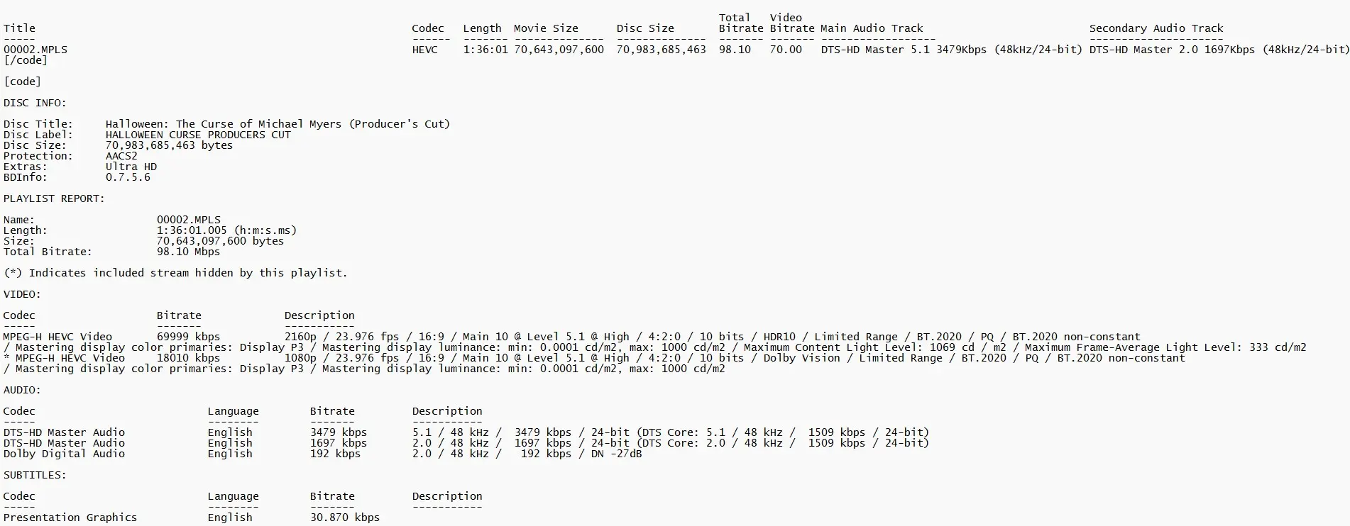 BD Info (what’s this?)