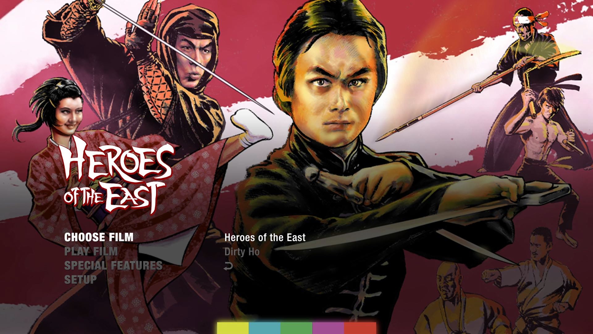 Heroes of the East Blu-ray Choose Film Menu Heroes of the East Blu-ray Extras Menu Heroes of the East Blu-ray Extras Menu Heroes of the East Blu-ray Setup Audio Menu Heroes of the East Blu-ray Setup Subtitles Menu Features