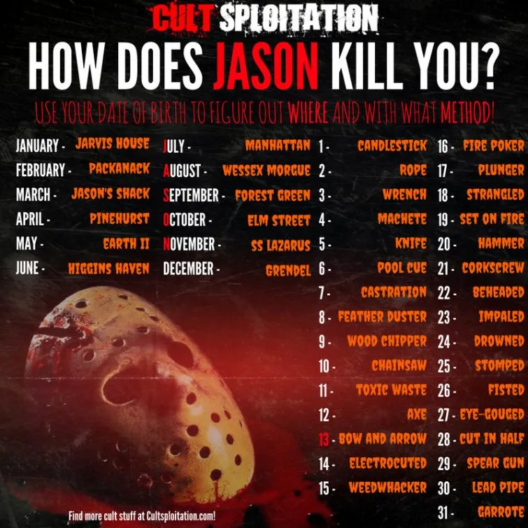How does Jason kill you? Find out with our FRIDAY THE 13TH birthday game