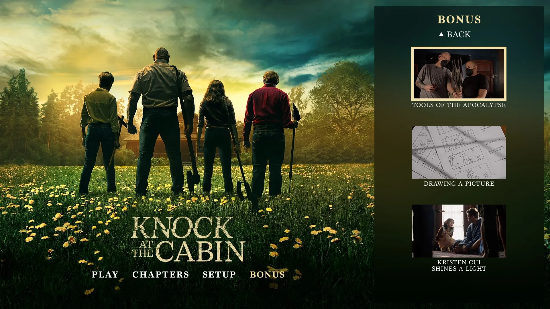- NEW Choosing Wisely: Behind the Scenes of Knock at the Cabin (1080p; 23:37)