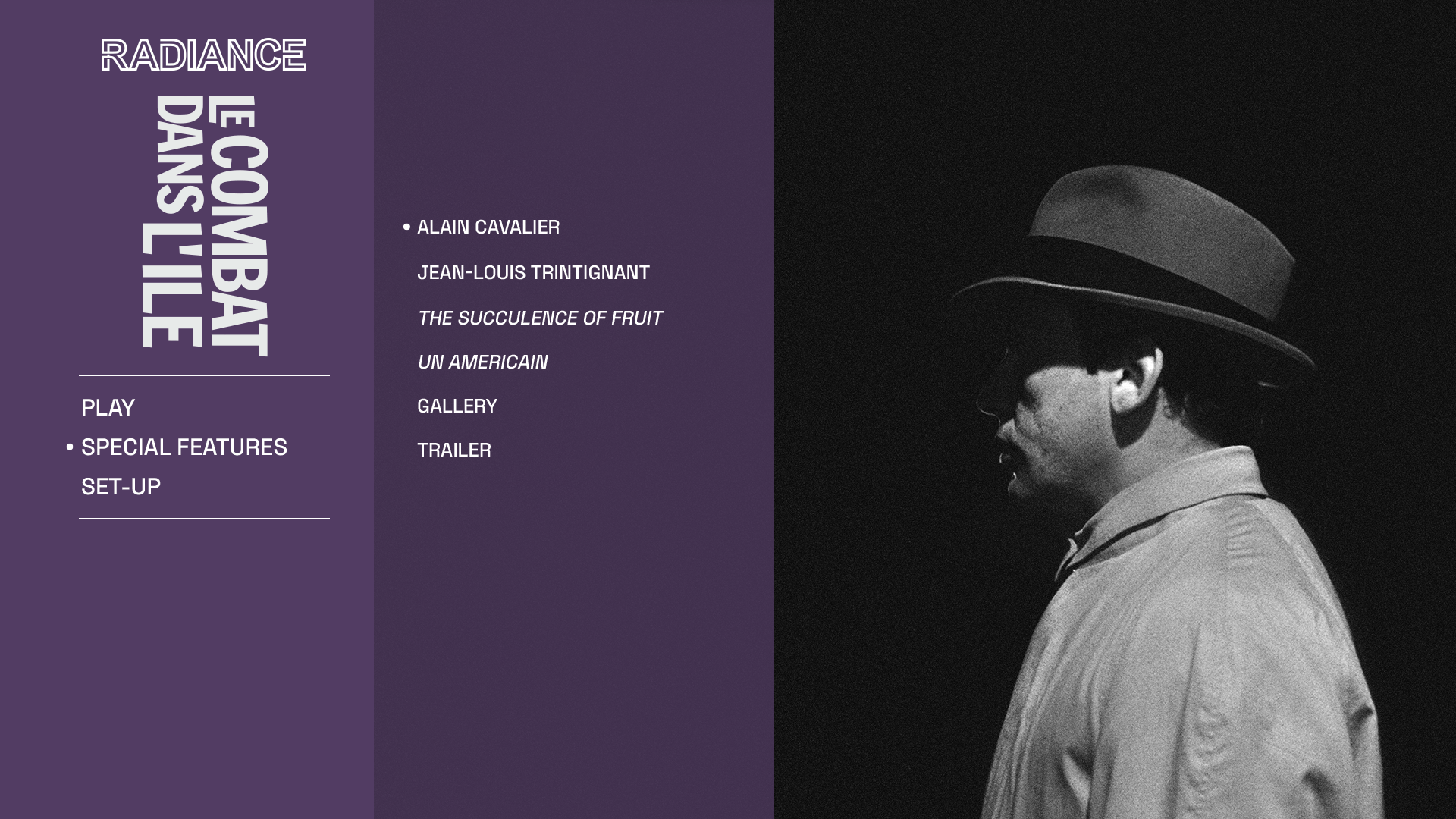 - The Succulence of Fruit: An interview with French critic Philippe Roger who provides an analysis of the film and Cavalier’s work (1080p; 37:29)