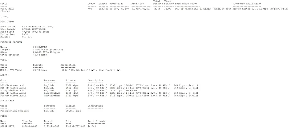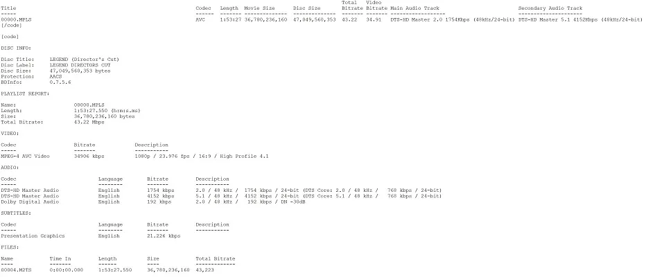 Theatrical Cut BD Info