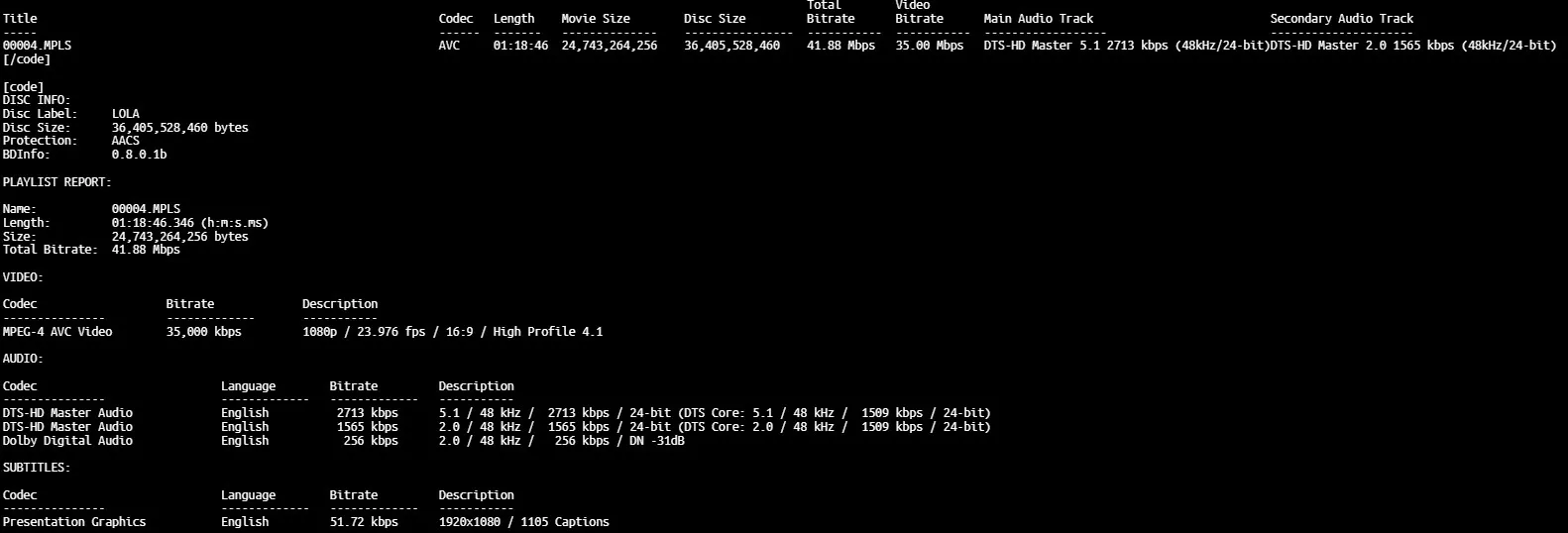 BD Info (what’s this?)