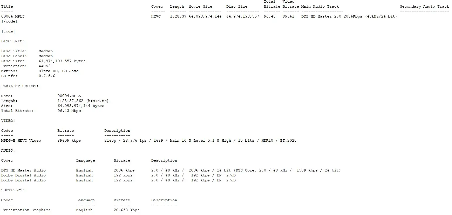 BD Info (what’s this?)
