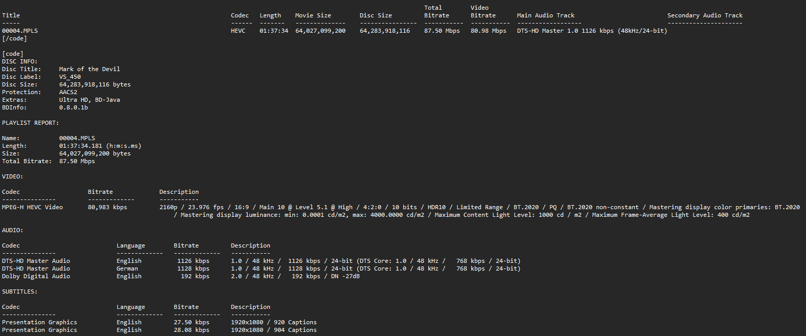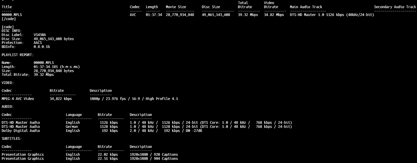 BD Info (what’s this?)