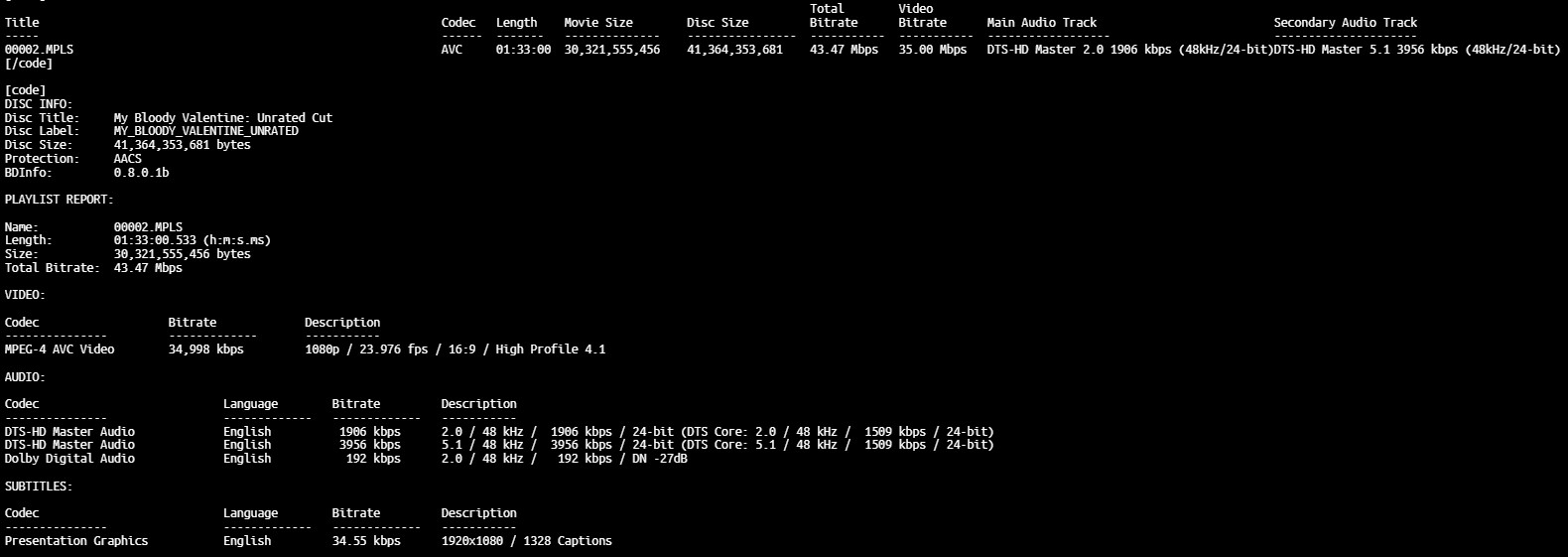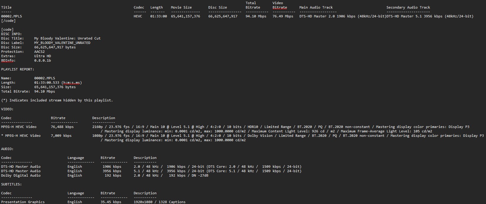 My Bloody Valentine uncut Blu-ray color barcodeMy Bloody Valentine theatrical Blu-ray color barcode