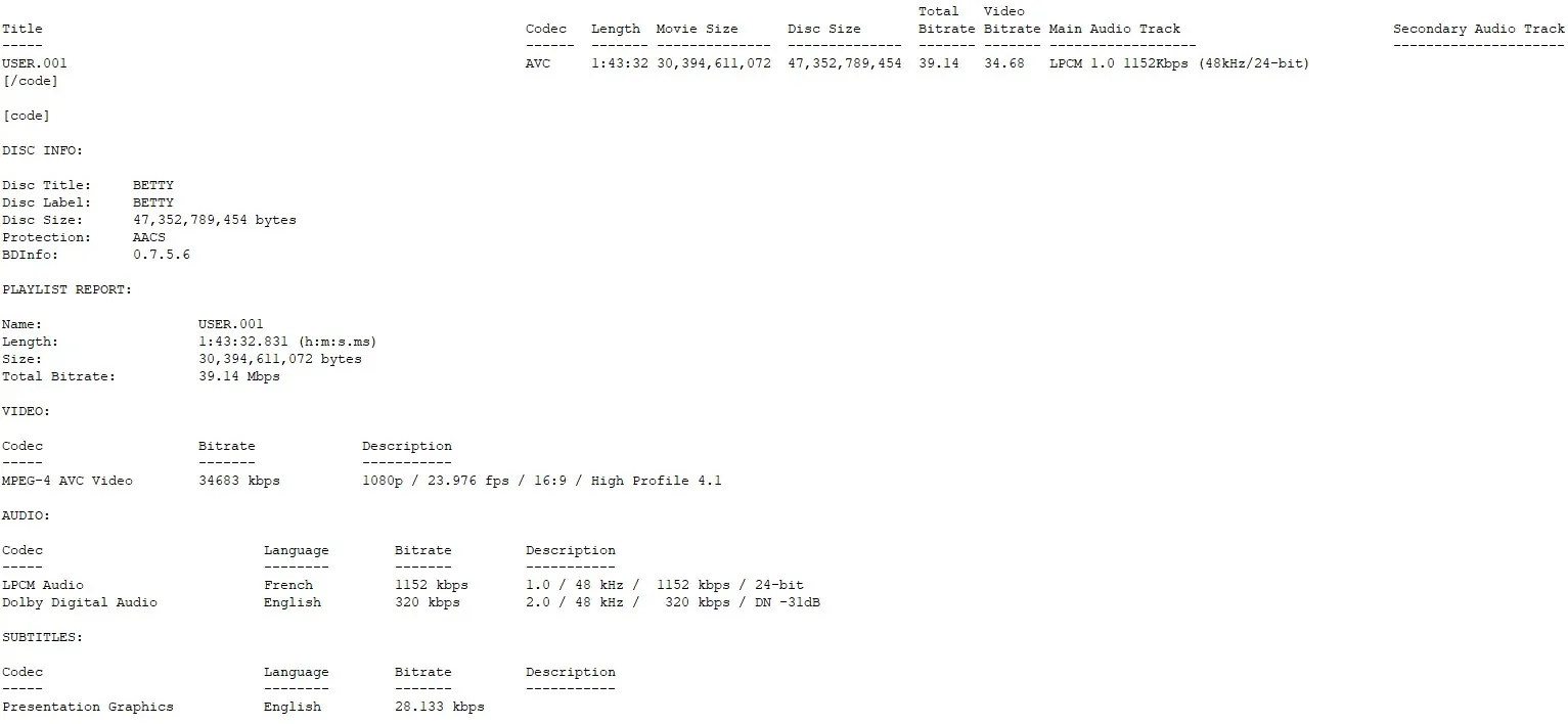 BD Info (what’s this?)