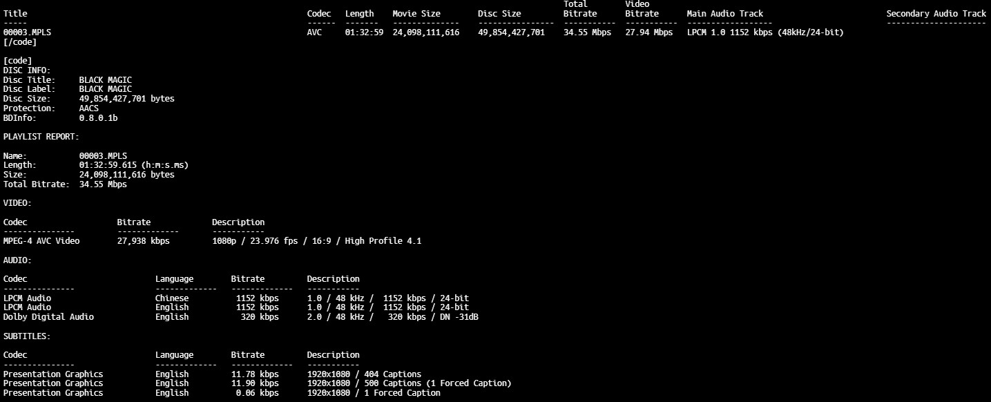Black Magic Part 2 LPCM 1.0 Mandarin Spek