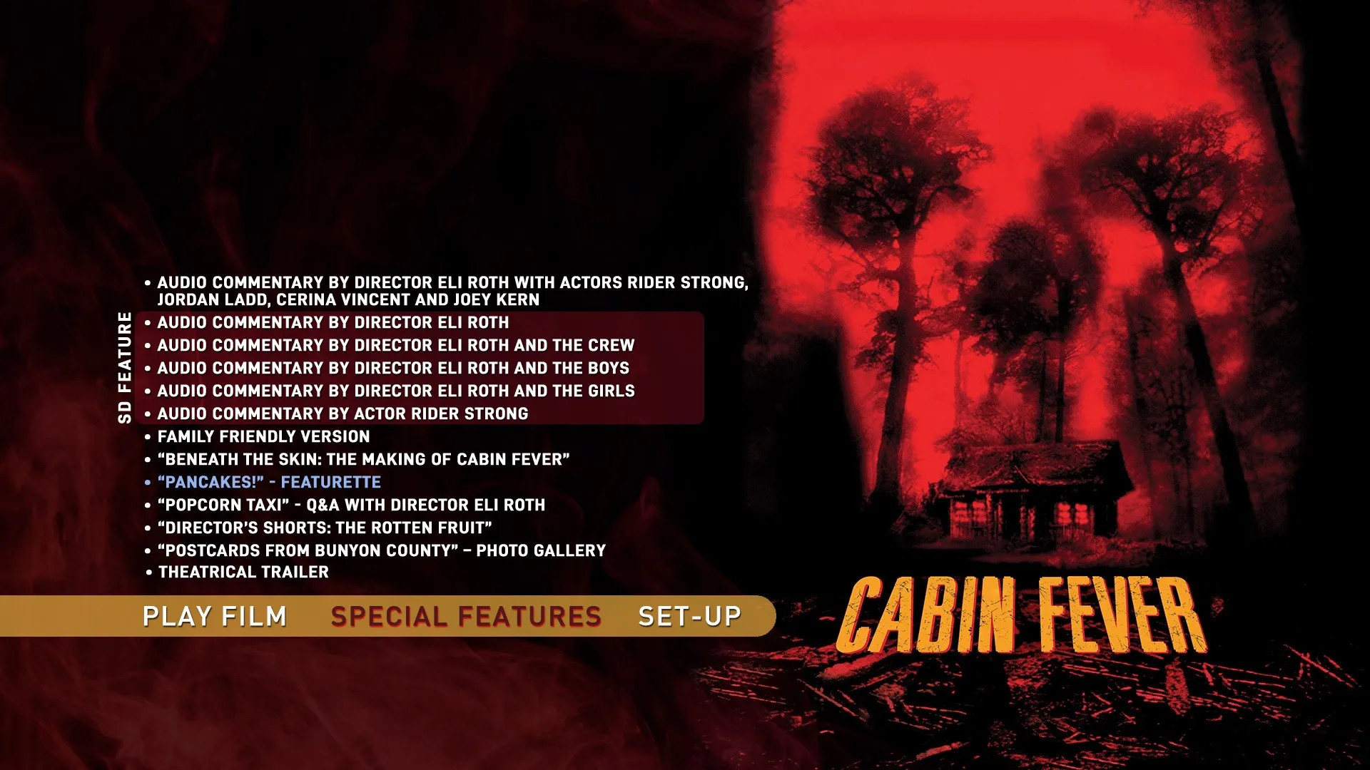 - Audio commentary by director Eli Roth with actors Rider Strong, Jordan Ladd, Cerina Vincent and Joey Kern