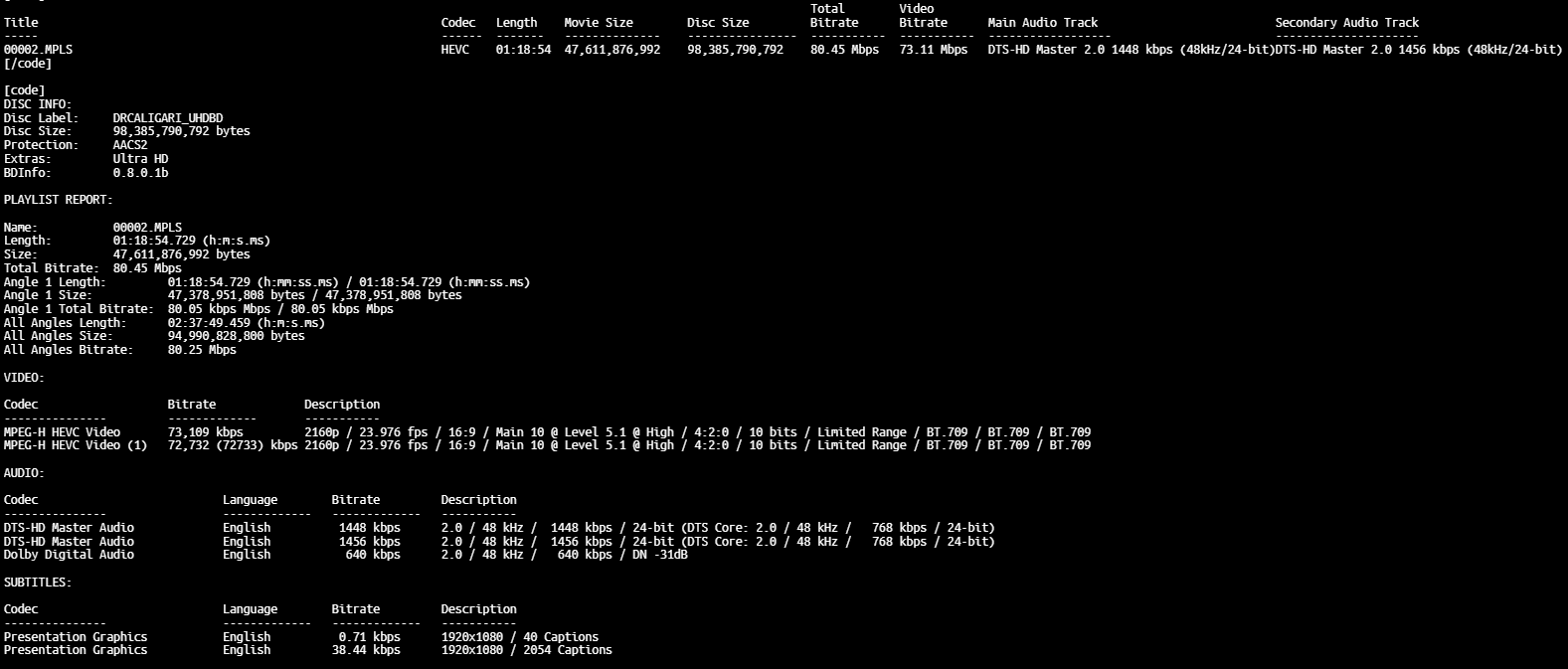 BD Info (what’s this?)