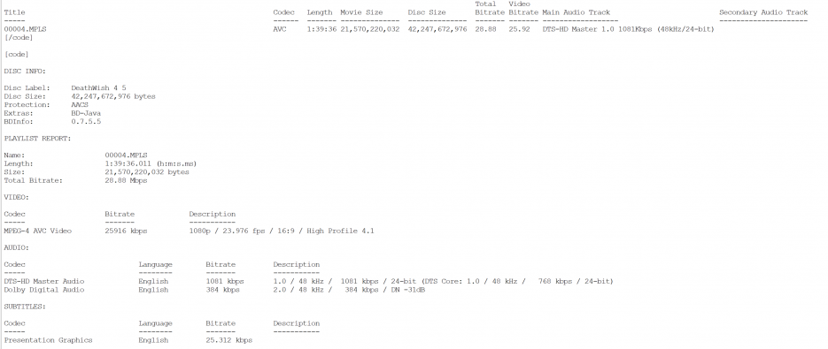 Death Wish 4 BD Info