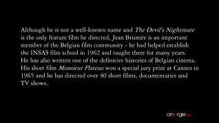 The Devil’s Nightmare Blu-ray menu The Devil’s Nightmare extras menu The Devil’s Nightmare disclaimer The Devil’s Nightmare cap 1 The Devil’s Nightmare cap 2 The Devil’s Nightmare cap 3 The Devil’s Nightmare cap 4 The Devil’s Nightmare cap 5 The Devil’s Nightmare cap 6 The Devil’s Nightmare cap 7 The Devil’s Nightmare cap 8 The Devil’s Nightmare cap 9 The Devil’s Nightmare cap 10 The Devil’s Nightmare cap 11 The Devil’s Nightmare cap 12 The Devil’s Nightmare cap 13 The Devil’s Nightmare Jean Brismee interview 1 The Devil’s Nightmare Jean Brismee interview 2 The Devil’s Nightmare Robert Lombaerts interview The Devil’s Nightmare Roland Lethem interview 1 The Devil’s Nightmare Roland Lethem interview 2 The Devil’s Nightmare US trailer 1 cap 1 The Devil’s Nightmare US trailer 1 cap 2 The Devil’s Nightmare US trailer 2 cap 1 The Devil’s Nightmare US trailer 2 cap 2 The Devil’s Nightmare TV spot 1 The Devil’s Nightmare TV spot 2 The Devil’s Nightmare UK trailer 1 The Devil’s Nightmare UK trailer 2