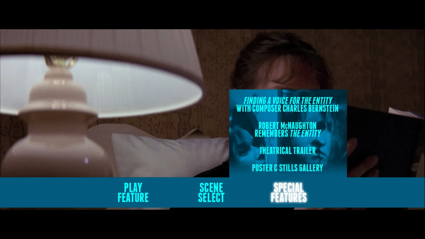 The Entity Umbrella Blu-ray menu The Entity Umbrella extra features menu The Entity Umbrella cap 1 The Entity Umbrella cap 2 The Entity Umbrella cap 3 The Entity Umbrella cap 4 The Entity Umbrella cap 5 The Entity Umbrella cap 6 The Entity Umbrella cap 7 The Entity Umbrella cap 8 The Entity Umbrella cap 9 The Entity Umbrella cap 10 The Entity Umbrella cap 11 The Entity Umbrella cap 12 The Entity Umbrella cap 13 The Entity Umbrella Charles Bernstein interview 1 The Entity Umbrella Charles Bernstein interview 2 The Entity Umbrella Robert McNaughton interview 1 The Entity Umbrella Robert McNaughton interview 2 The Entity Umbrella trailer 1 The Entity Umbrella trailer 2 The Entity Umbrella still gallery 1 The Entity Umbrella still gallery 2