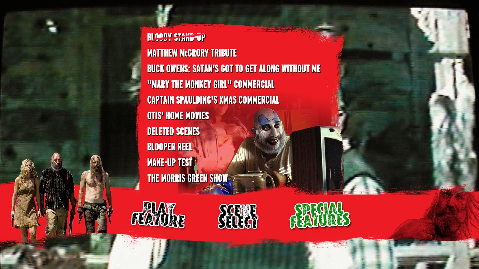 The Devil’s Rejects Menu The Devil’s Rejects Chapter Menu The Devil’s Rejects Bonus Menu The Devil’s Rejects screencap The Devil’s Rejects screencap The Devil’s Rejects screencap The Devil’s Rejects screencap The Devil’s Rejects screencap The Devil’s Rejects screencap The Devil’s Rejects screencap The Devil’s Rejects screencap The Devil’s Rejects screencap The Devil’s Rejects screencap The Devil’s Rejects screencap The Devil’s Rejects screencap The Devil’s Rejects screencap The Devil’s Rejects screencap The Devil’s Rejects screencap The Devil’s Rejects screencap The Devil’s Rejects screencap The Devil’s Rejects screencap The Devil’s Rejects screencap The Devil’s Rejects screencap The Devil’s Rejects screencap The Devil’s Rejects screencap The Devil’s Rejects screencap The Devil’s Rejects screencap Bloody Standup Matthew McGrory Tribute Buck Owens: Satan’s Got to Get Along without Me Mary the Monkey Girl Commercial Captain Spaulding’s Xmas Commercial Captain Spaulding’s Xmas Commercial Otis’ Home Movies Swamp Escape Deleted Scene Family Argument Deleted Scene Keep Your Cool Deleted Scene Dr. Satan Attacks Deleted Scene Snake Bite Deleted Scene French Tickler Deleted Scene Pork Rind Deleted Scene Marshmallow Ass Deleted Scene Keep Your Mouth Shut Deleted Scene Otis and Candy Make Funky Music Deleted Scene Personal Escort Into Hell Deleted Scene Blooper Reel “Make-up Test” featurette “The Morris Green Show” featurette “The Morris Green Show” featurette Extra Features