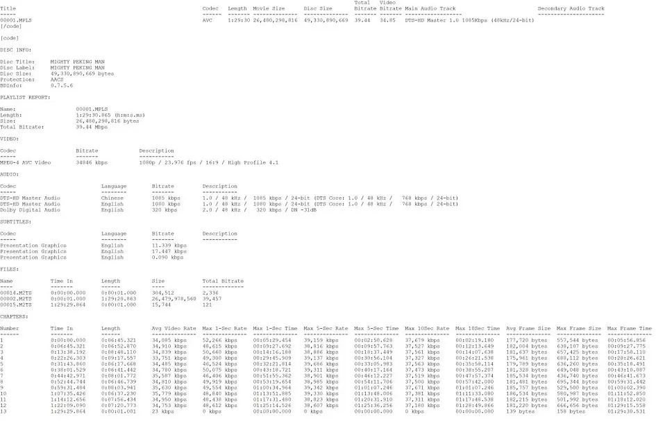 The Mighty Peking Man Blu-ray Bitrate Info