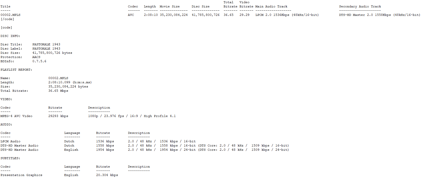 BD Info (what’s this?)