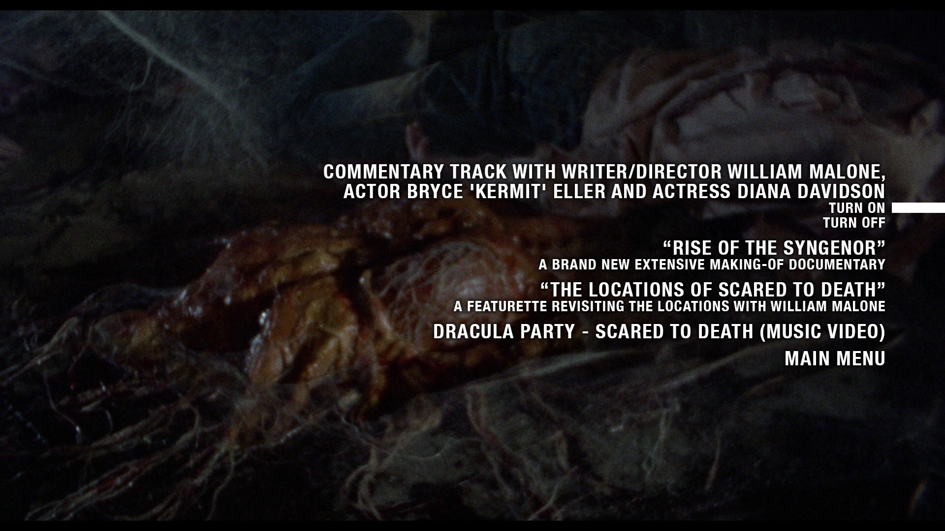 - NEW Commentary track with writer/director William Malone, actor Bryce ‘Kermit’ Eller and actress Diana Davidson