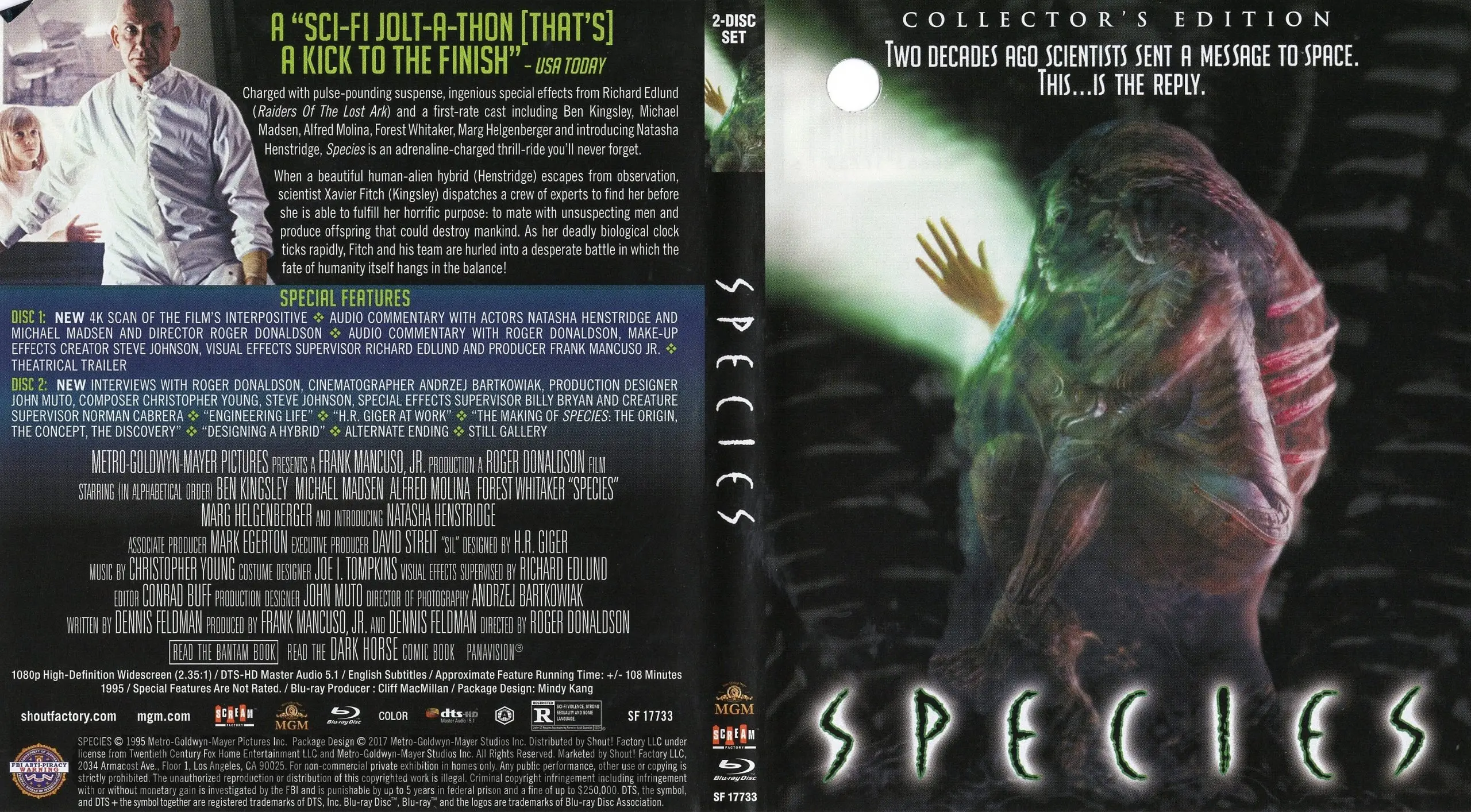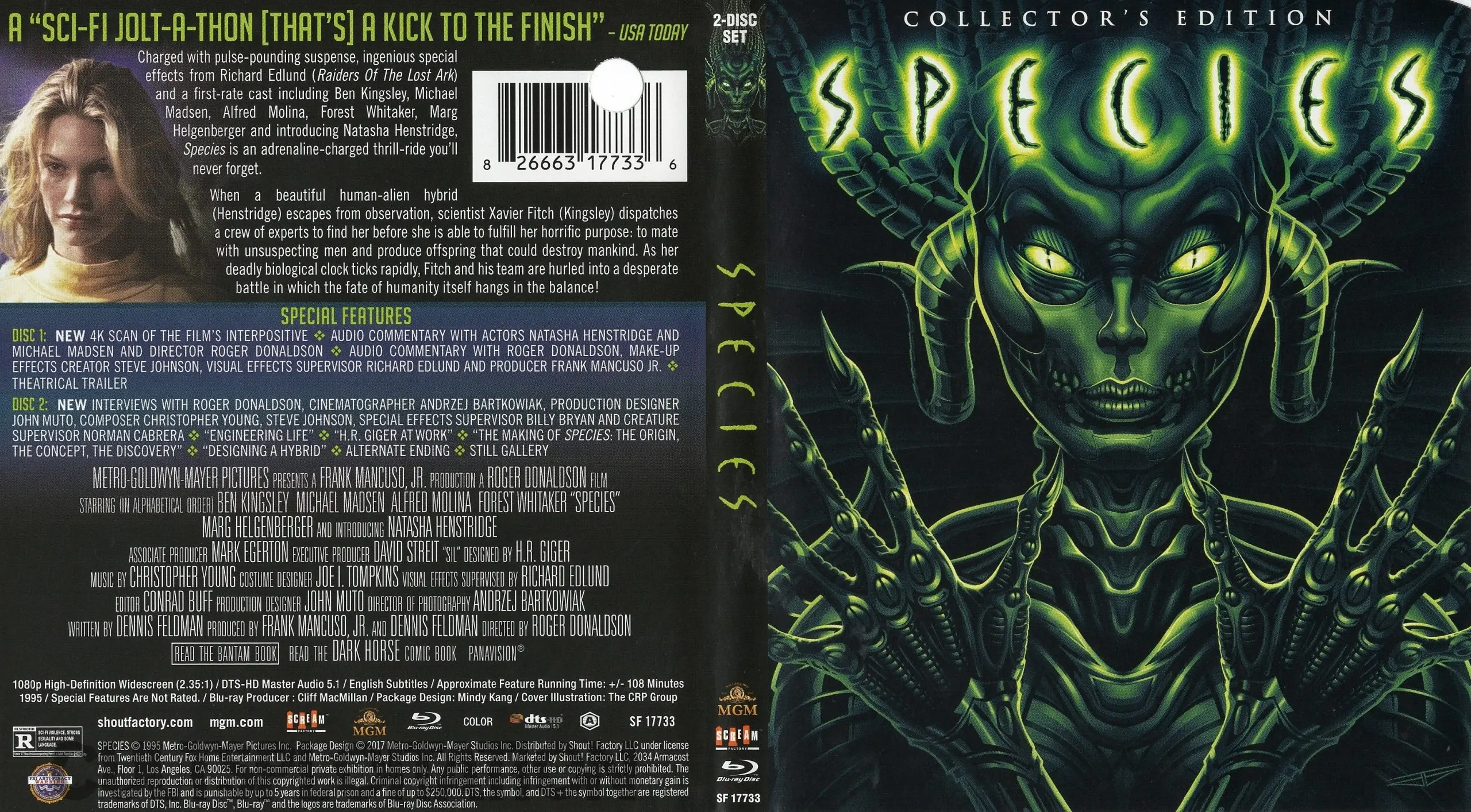 • NEW Afterbirth: The Evolution Of SPECIES Featuring Interviews With Director Roger Donaldson, Cinematographer Andzej Bartkowiak, Production Designer John Muto, Composer Christopher Young, Creature Designer Steve Johnson, And More (1080p; 36:43)