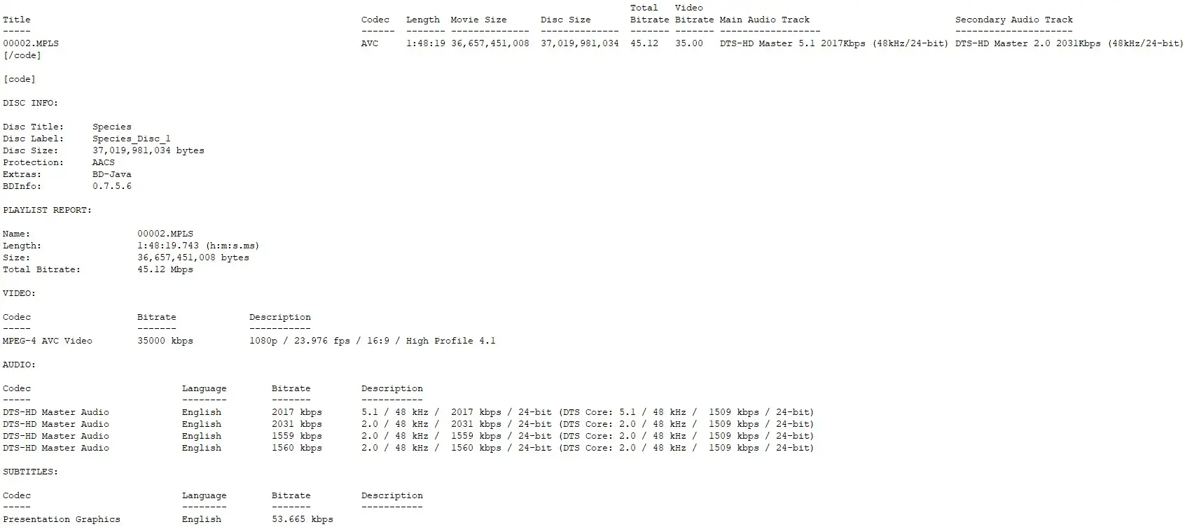 BD Info (what’s this?)