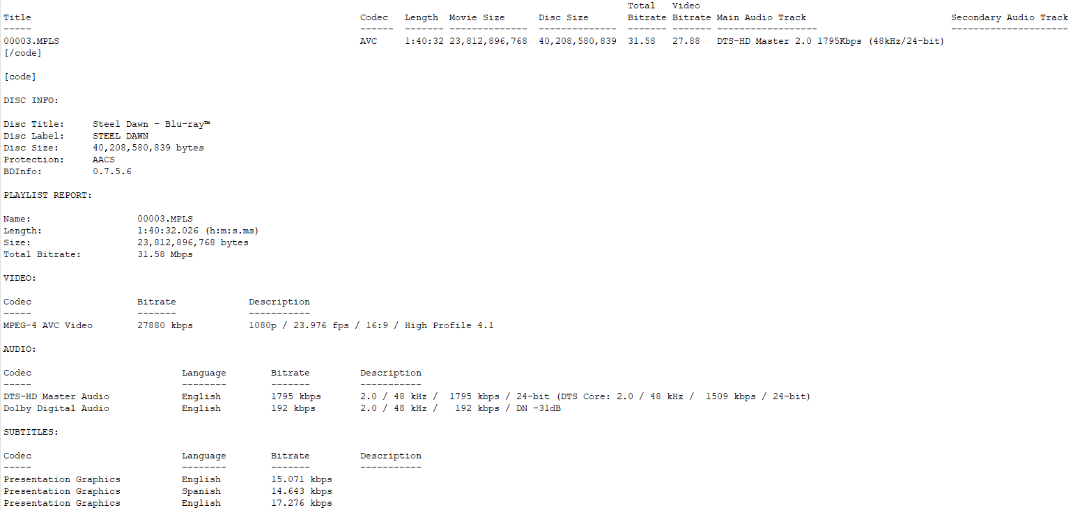 Steel Dawn BD info