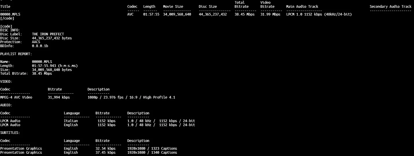 The Iron Prefect LPCM 1.0 mono Italian Spek