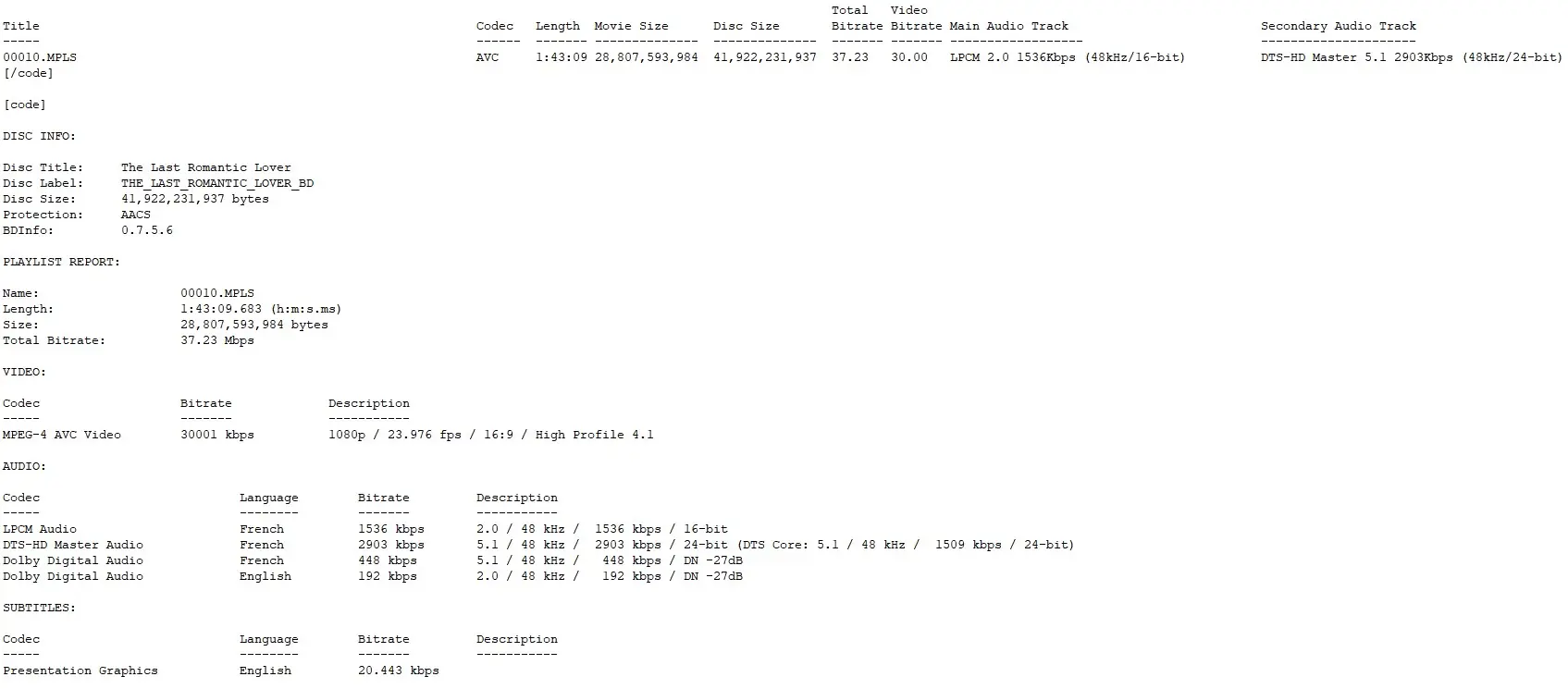 - NEW DTS-HD MA 2.0 Mono French track (Blu-ray)