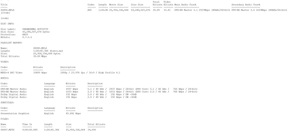 Paranormal Activity Bitrate Info