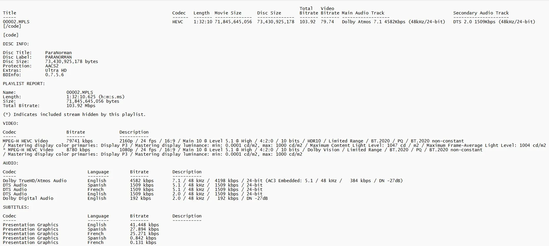 BD Info (what’s this?)